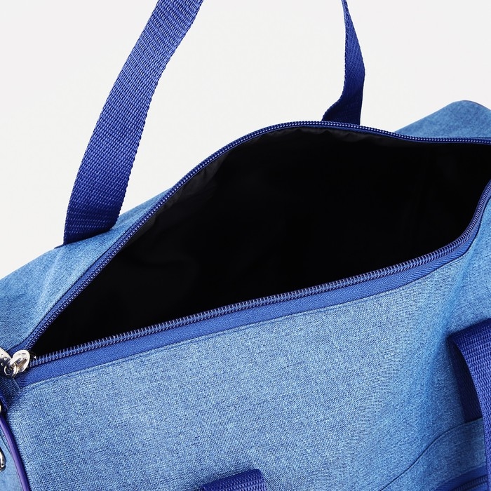 Сумка дорожная на молнии, наружный карман, длинный ремень, цвет синий
