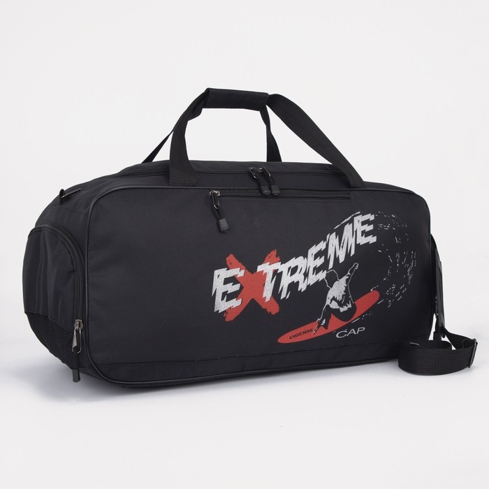 Сумка дорожная на молнии, отдел для обуви, наружный карман, длинный ремень, цвет чёрный