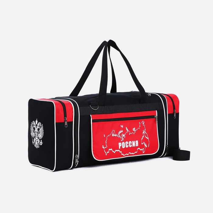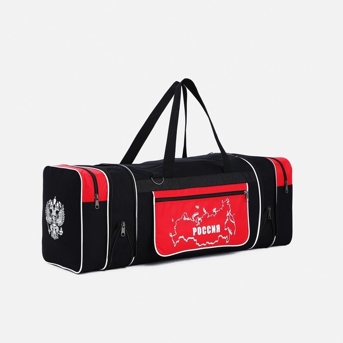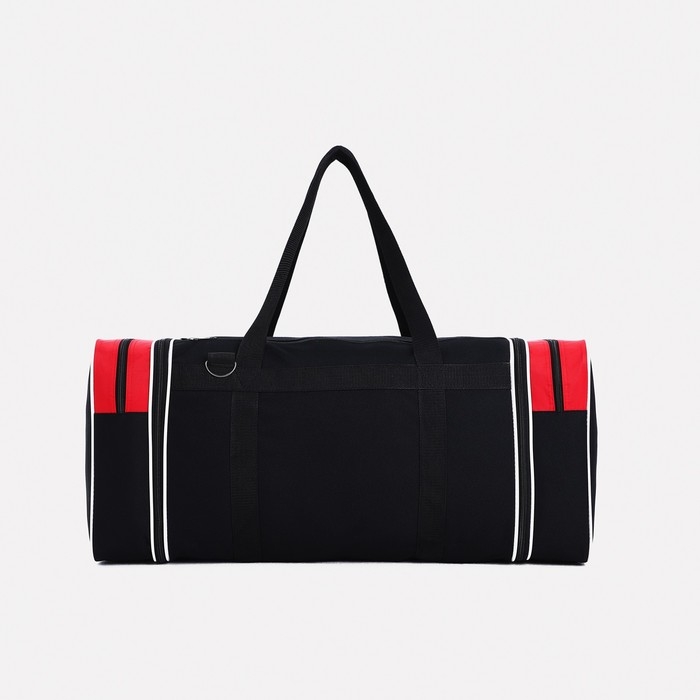 Сумка дорожная на молнии, с увеличением, 3 наружных кармана, длинный ремень, цвет чёрный/красный
