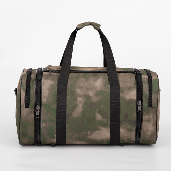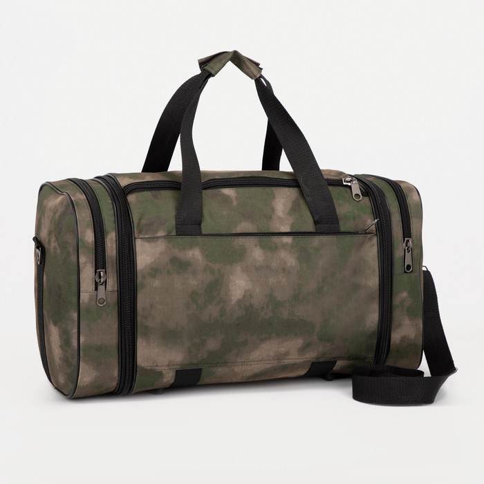 Сумка дорожная на молнии, с увеличением, 3 наружных кармана, длинный ремень, цвет хаки/камуфляж