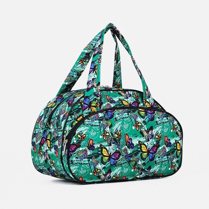Сумка дорожная женская на молнии, наружный карман, цвет зелёный
