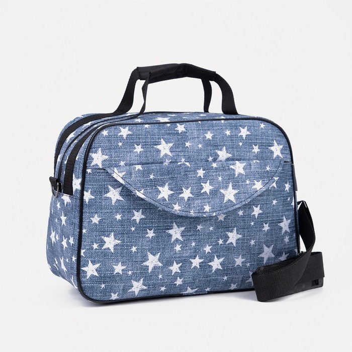 Сумка дорожная женская на молнии, наружный карман, длинный ремень, цвет голубой