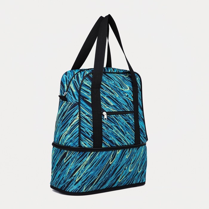 Сумка хозяйственная на молнии, с увеличением, наружный карман, цвет синий/бирюзовый