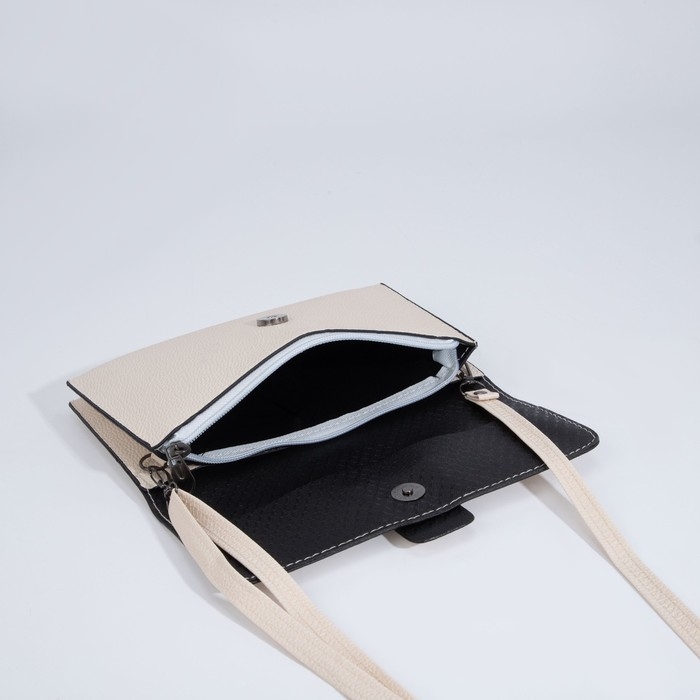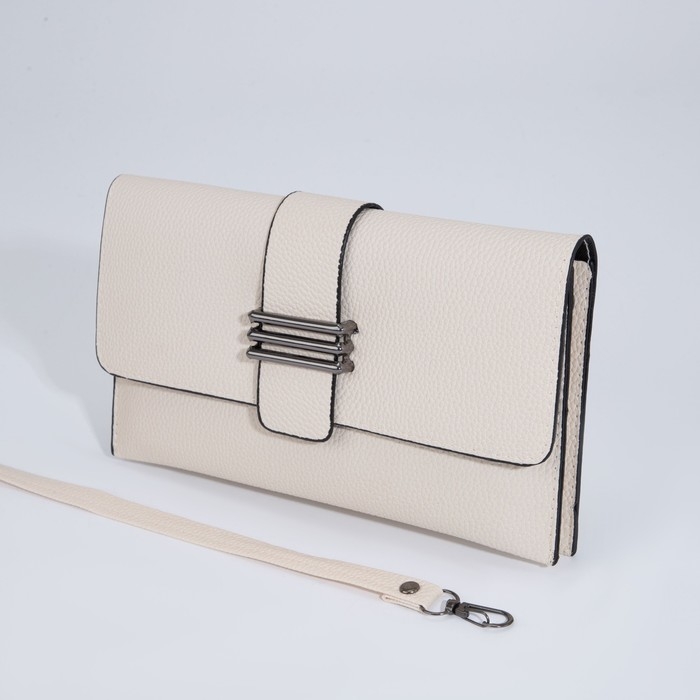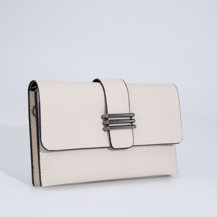 Сумка-клатч на магните, длинный ремень, цвет белый
