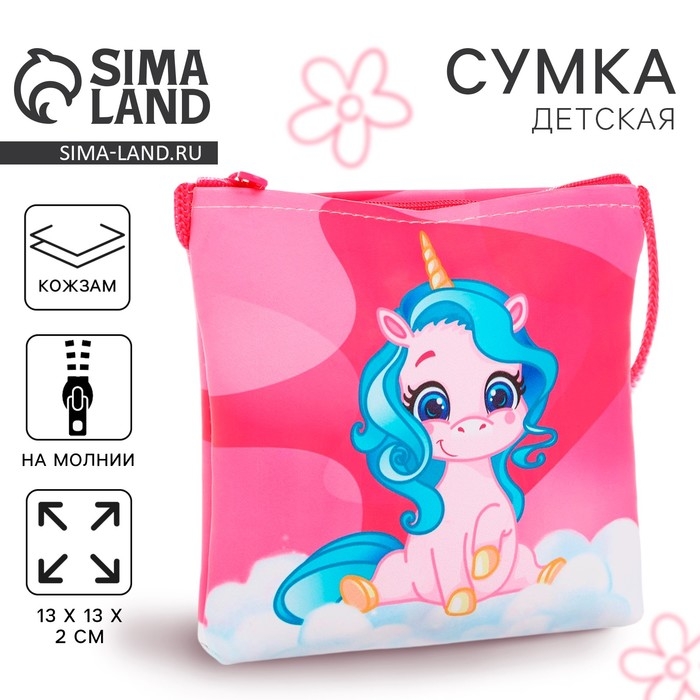 Сумка-кошелёк, для девочки через плечо "Волшебный единорог", 13х13х2 см