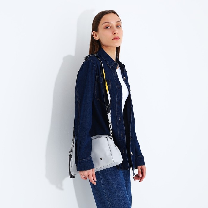 Сумка кросс-боди RICHET на молнии, наружный карман, 2 длинных ремня, цвет серый