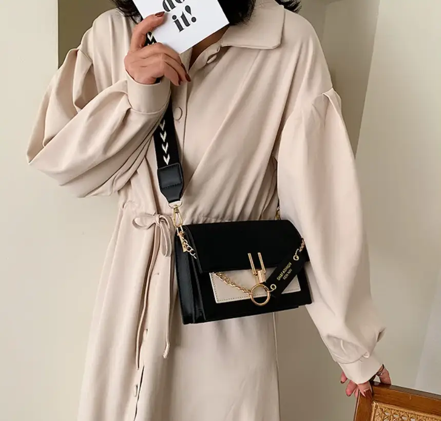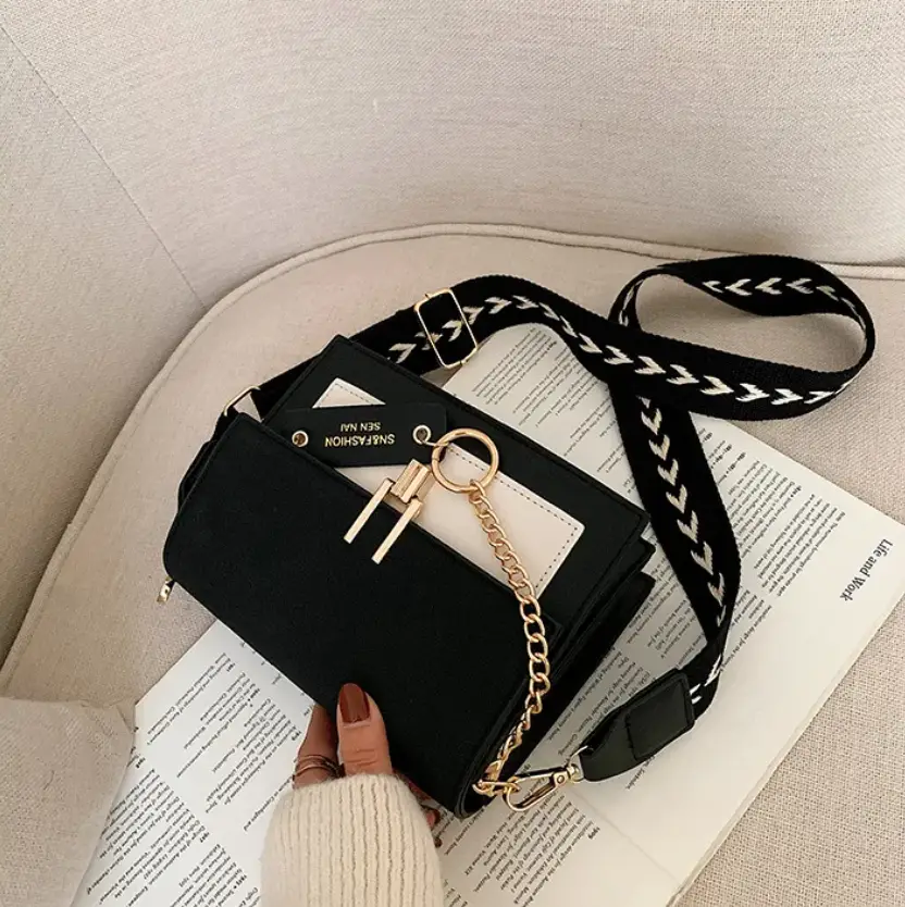 Сумка кросс-боди тканевый ремень экокожа черно-белая