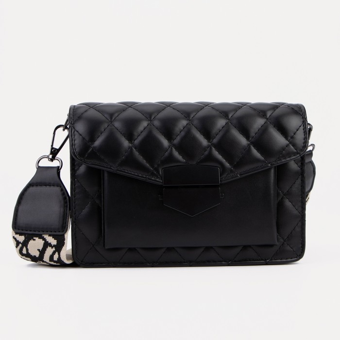Сумка-мессенджер на клапане, длинный ремень, цвет чёрный