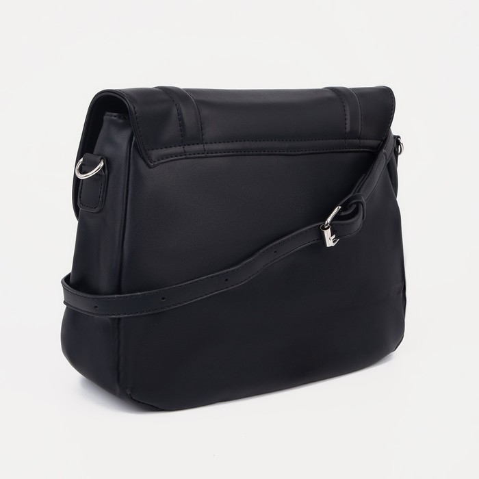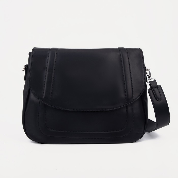 Сумка-мессенджер на клапане, длинный ремень, цвет чёрный