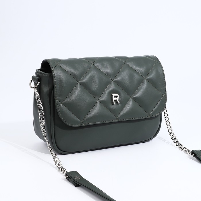 Сумка-мессенджер RICHET на магните, наружный карман, длинный ремень, цвет зелёный
