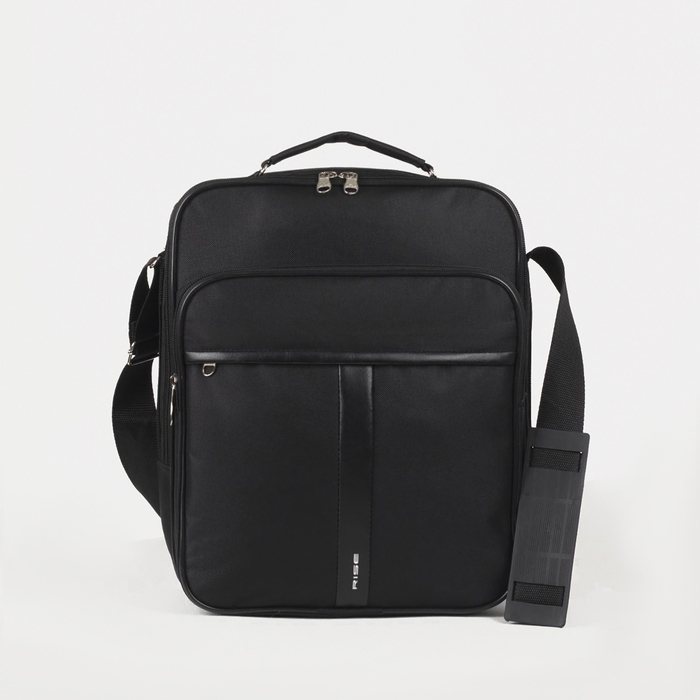 Сумка мужская на молниях RISE, длинный ремень, цвет чёрный