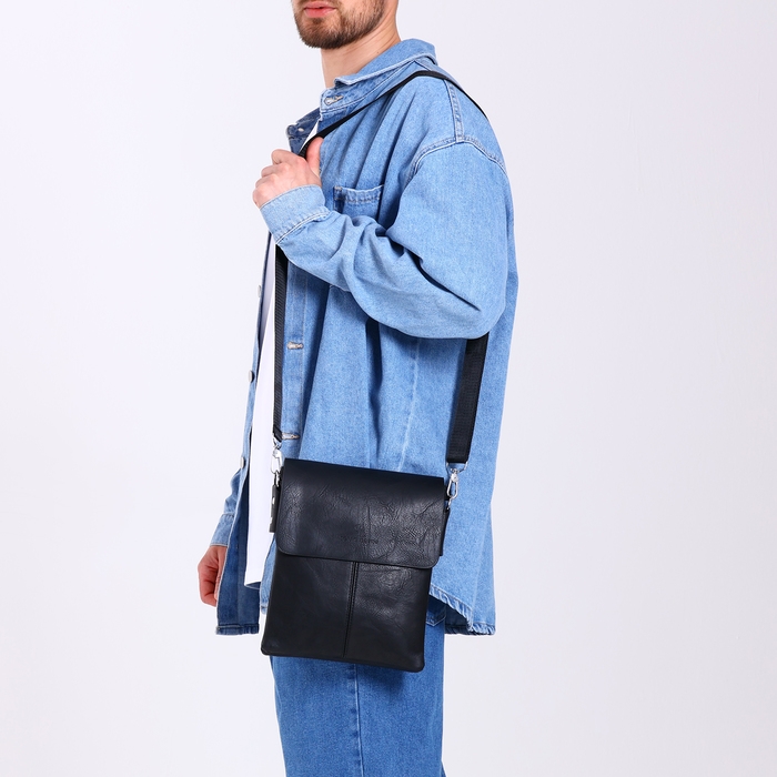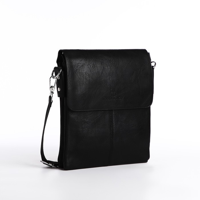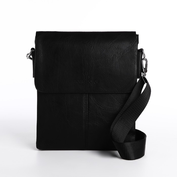 Сумка мужская на молниях Terra Dever, длинный ремень, цвет чёрный