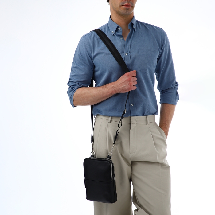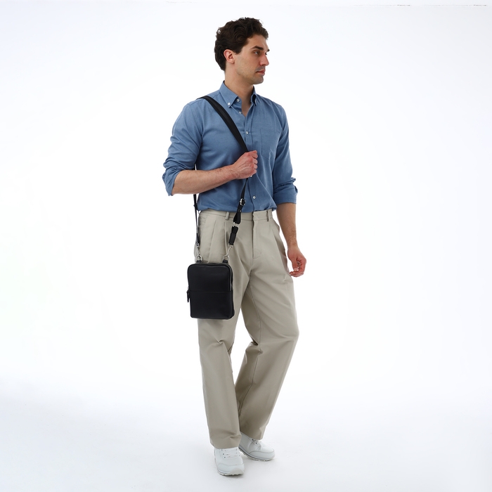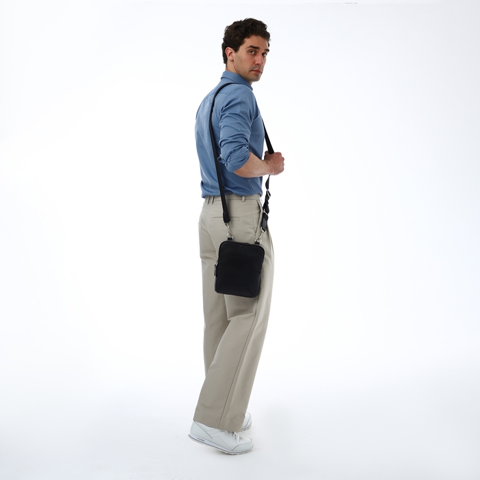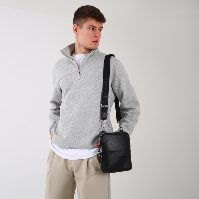 Сумка мужская TEXTURA, через плечо, натуральная кожа, цвет чёрный