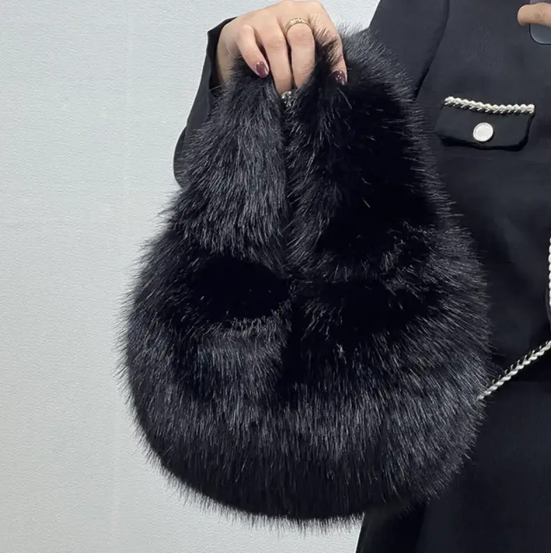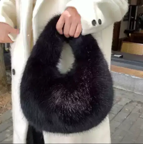Сумка на плечо меховая зимняя черная