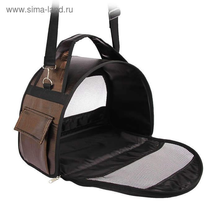 Сумка - переноска для животных, полукруглая, искусственная кожа, 40 х 20 х 27 см, коричневая