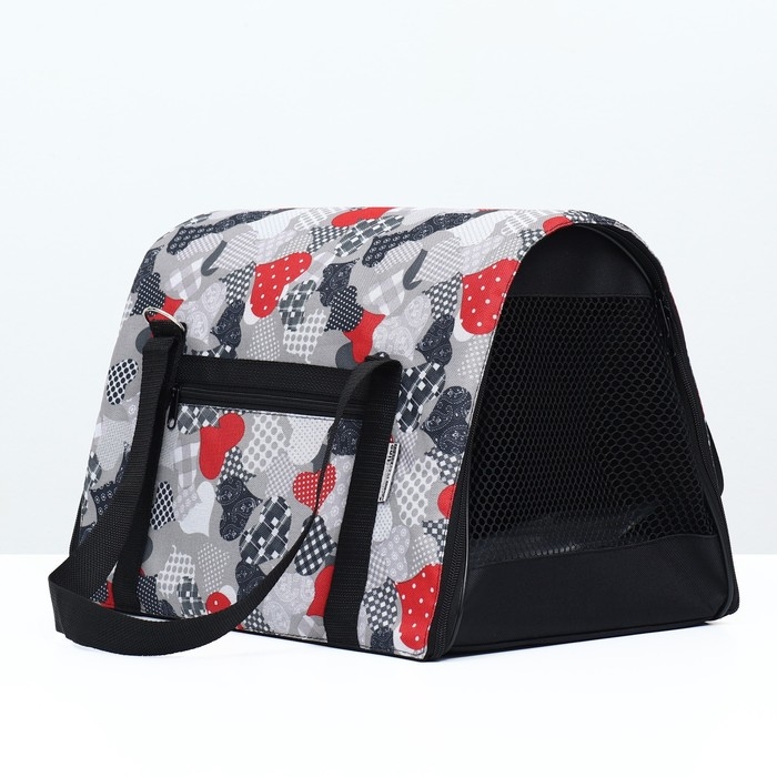 Сумка - переноска для животных "Принт", размер S, 39 х 23 х 27 см, сердечки