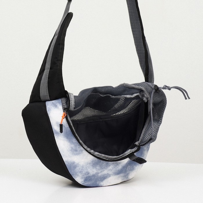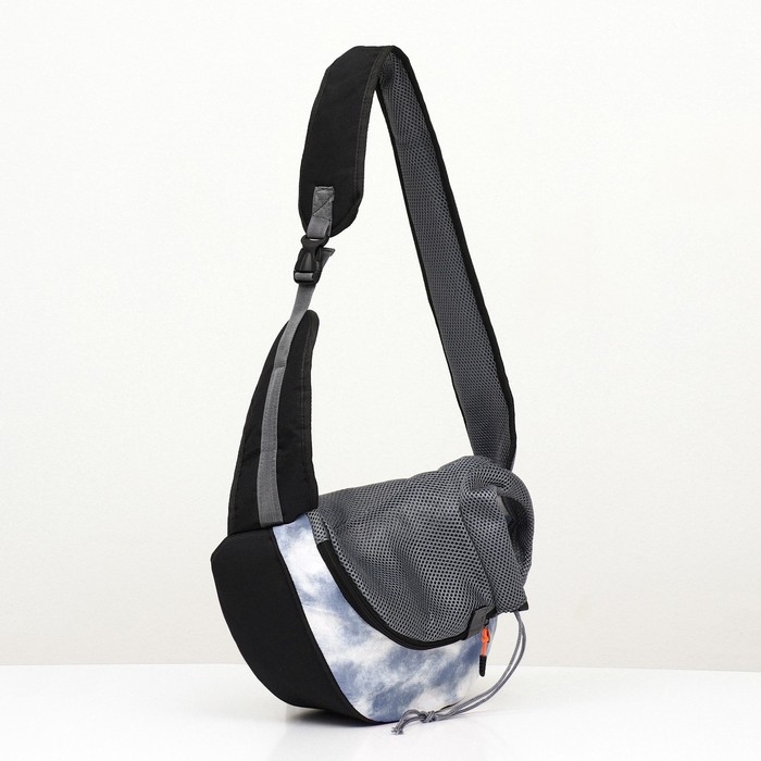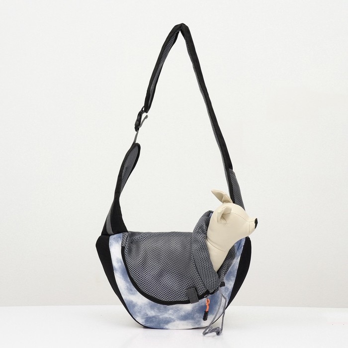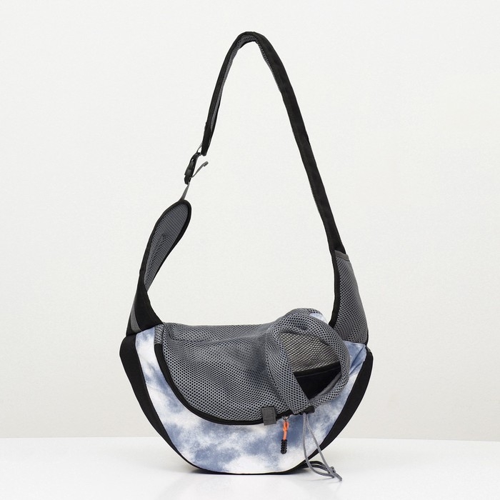 Сумка-переноска "Слинг" с креплением для ошейника, 45 х 11 х 24 см, бело-серая