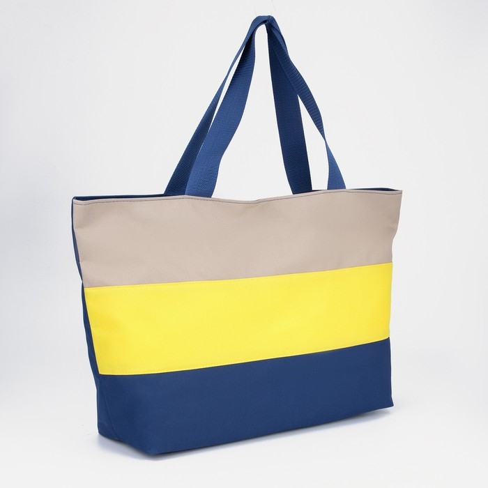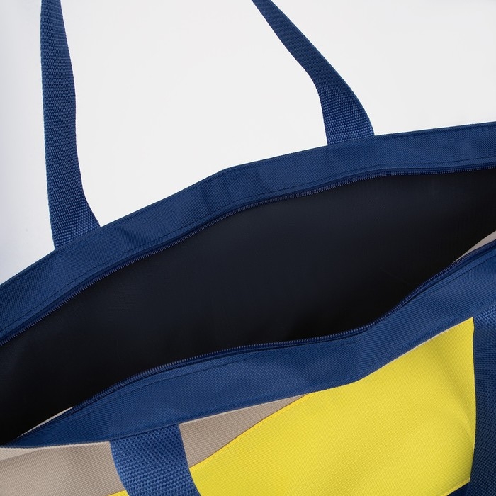 Сумка пляжная на молнии, цвет синий/жёлтый/бежевый
