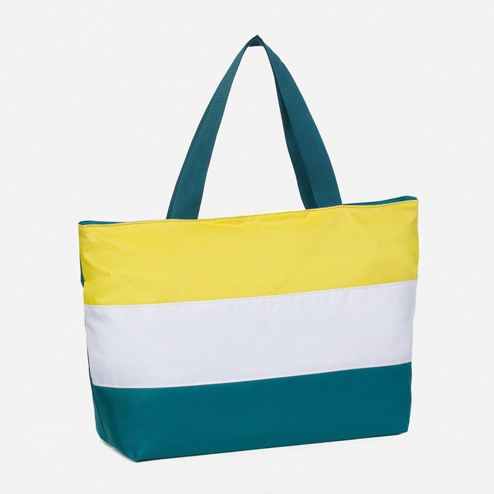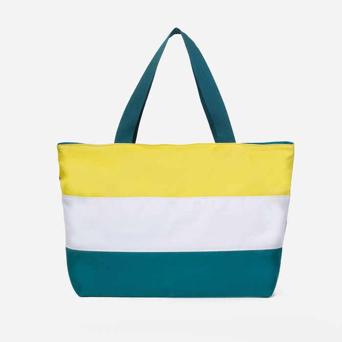 Сумка пляжная на молнии, цвет зелёный/белый/жёлтый