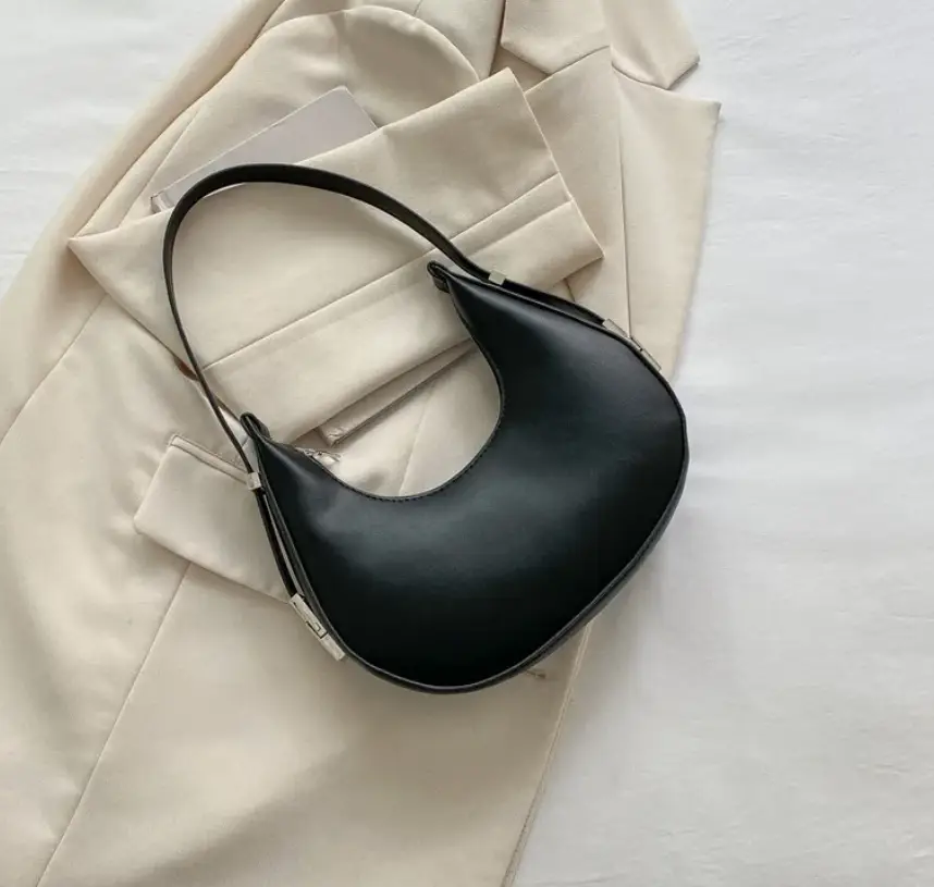 Сумка полумесяц маленькая экокожа черная