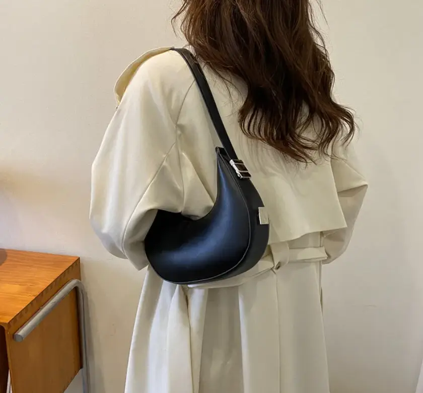 Элегантная женская сумка в форме Луны станет вашим идеальным спутником в повседневной жизни. Изготовленная из гладкой черной экокожи с легким матовым эффектом, она подчеркивает стильный минималистичный дизайн. Прочная текстура материала обеспечивает долговечность и устойчивость к внешним воздействиям.