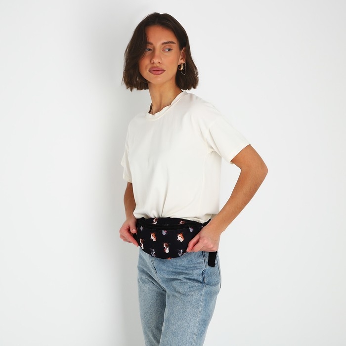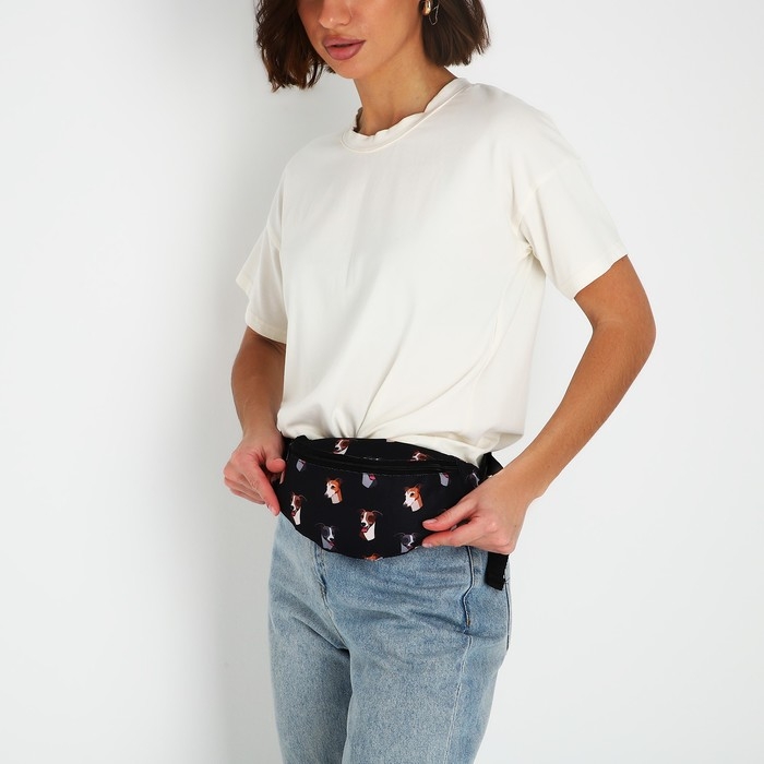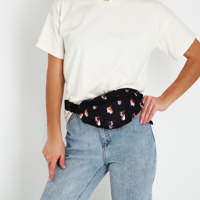 Сумка поясная Собаки, 32х8х15 см, отд на молнии, цвет чёрный