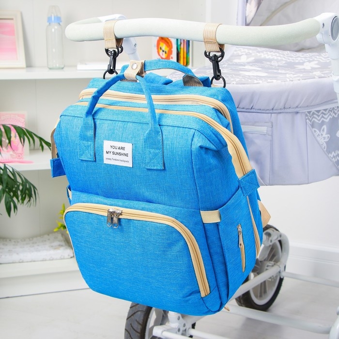 Сумка рюкзак для мамы и малыша с пеленальным ковриком, цвет голубой