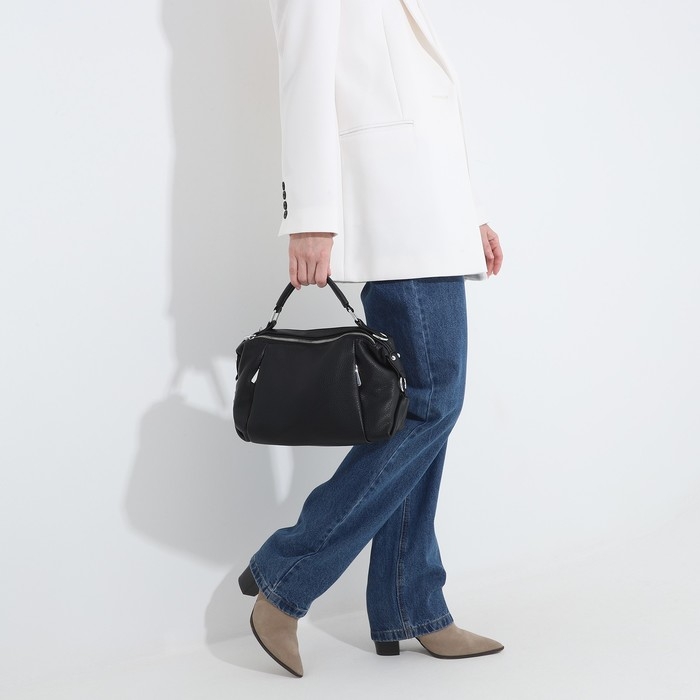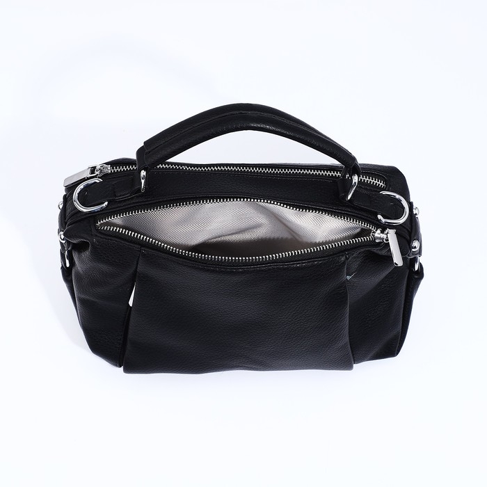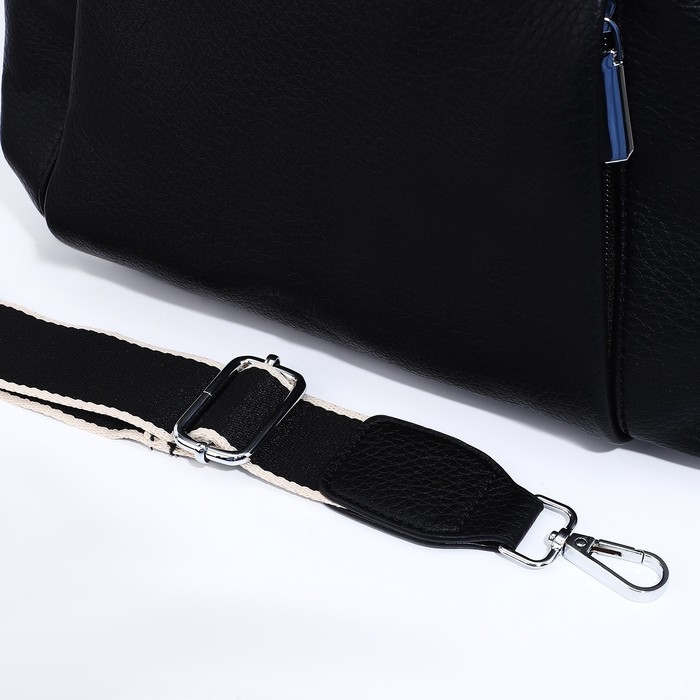 Сумка-саквояж на молнии, наружный карман, длинный ремень, цвет чёрный