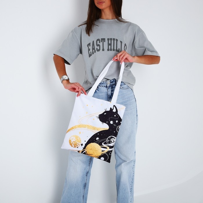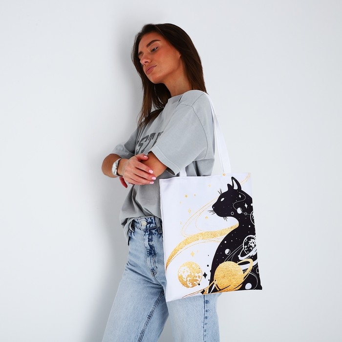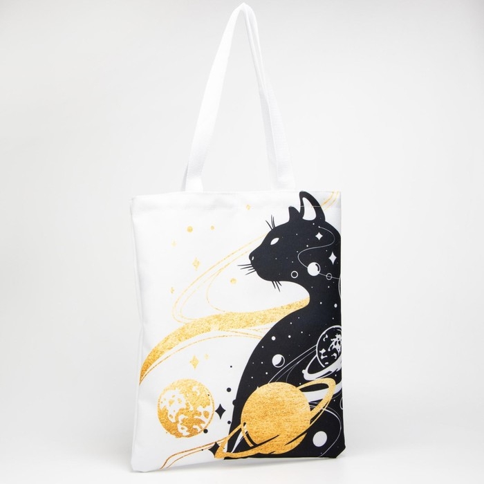 Сумка-шопер Космический без молнии, без подкладки, цвет белый