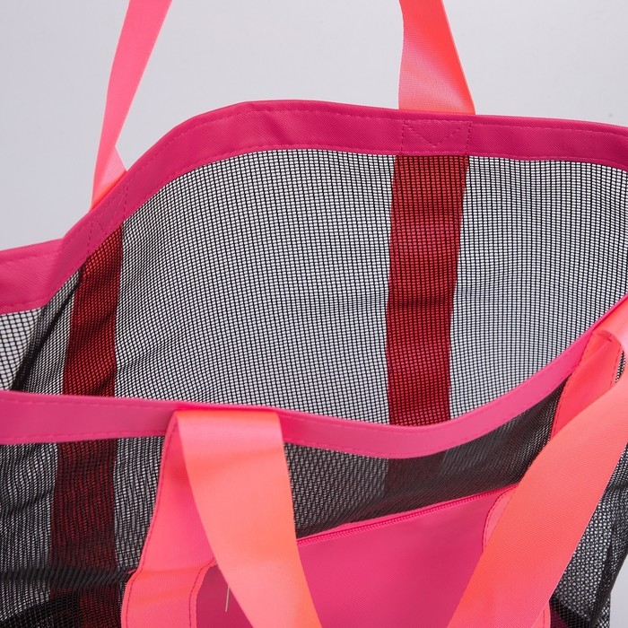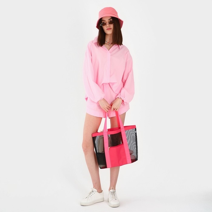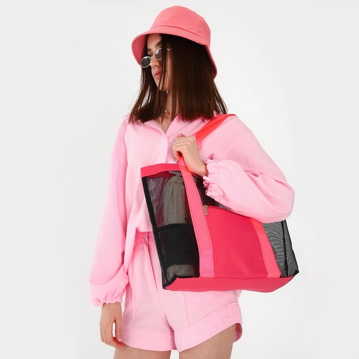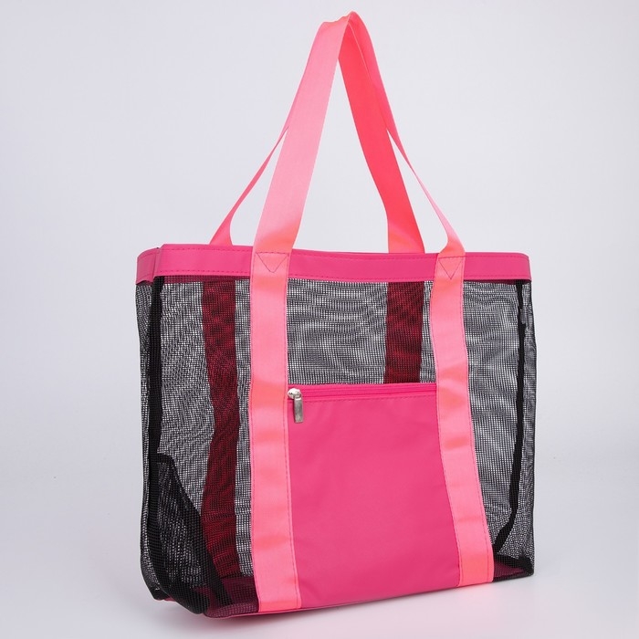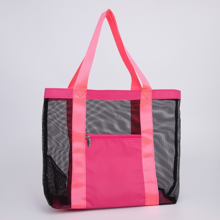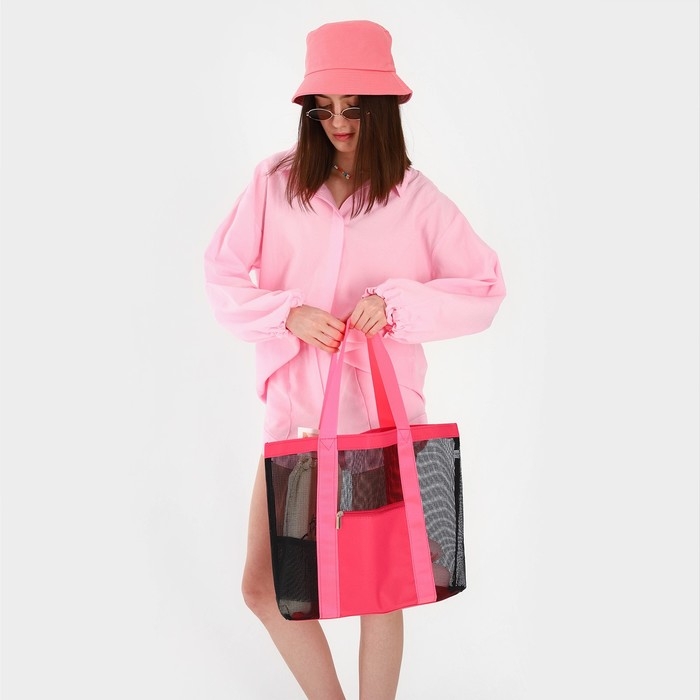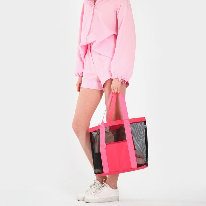 Сумка - шопер пляжная , 33х32х11 см, с сеткой, цвет розовый