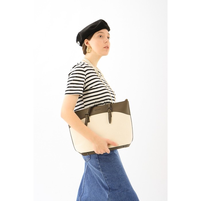 Сумка-шопер женская на молнии, David Jones, наружный карман, бежевый/коричневый