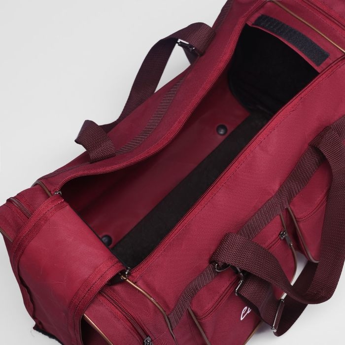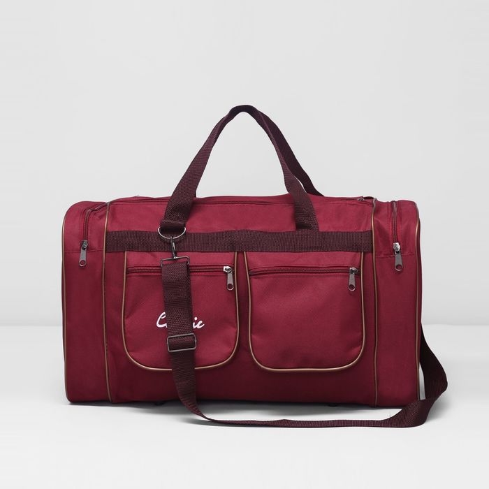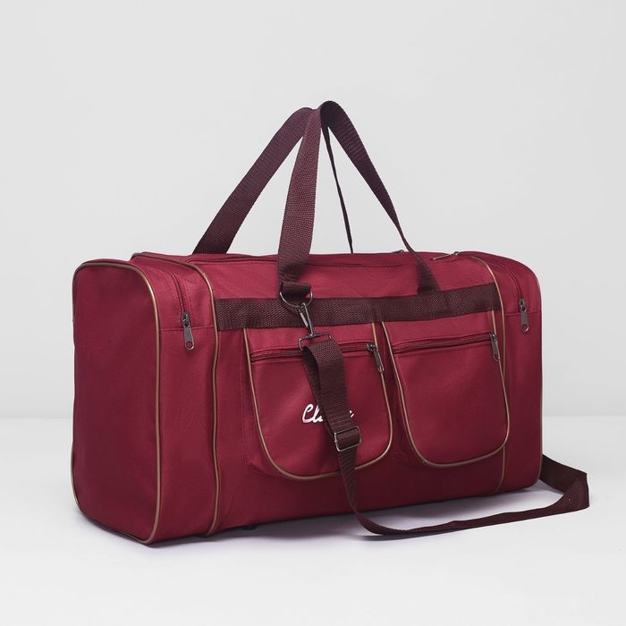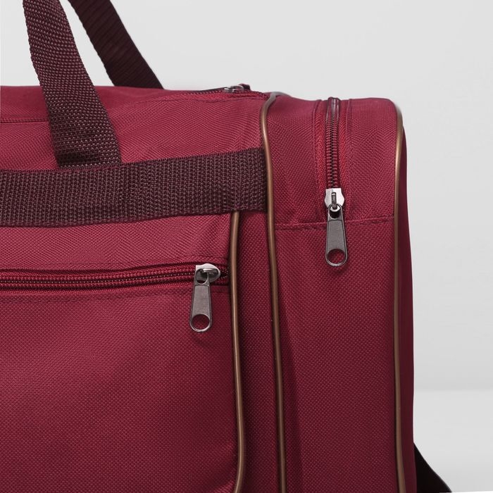 Сумка спортивная, 3 отдела на молниях, 2 наружных кармана, длинный ремень, средний размер, цвет бордовый