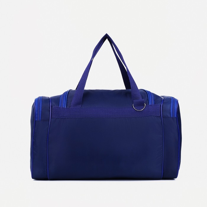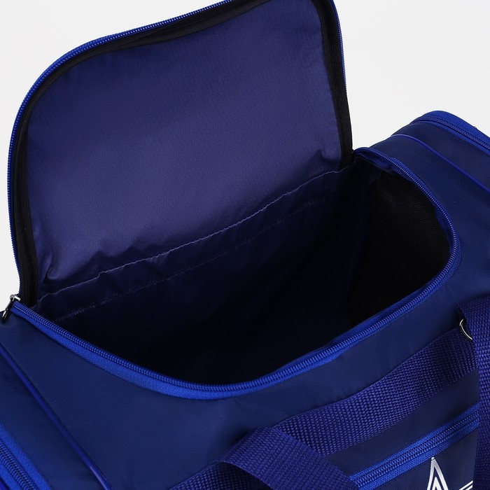 Сумка спортивная мужская на молнии, 3 наружных кармана, длинный ремень, средний размер, цвет синий