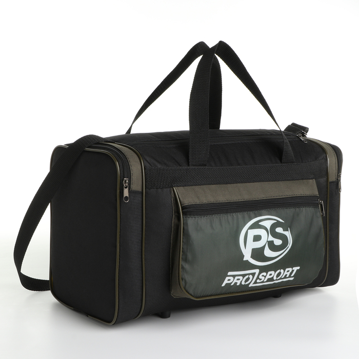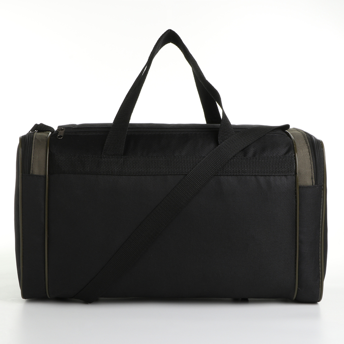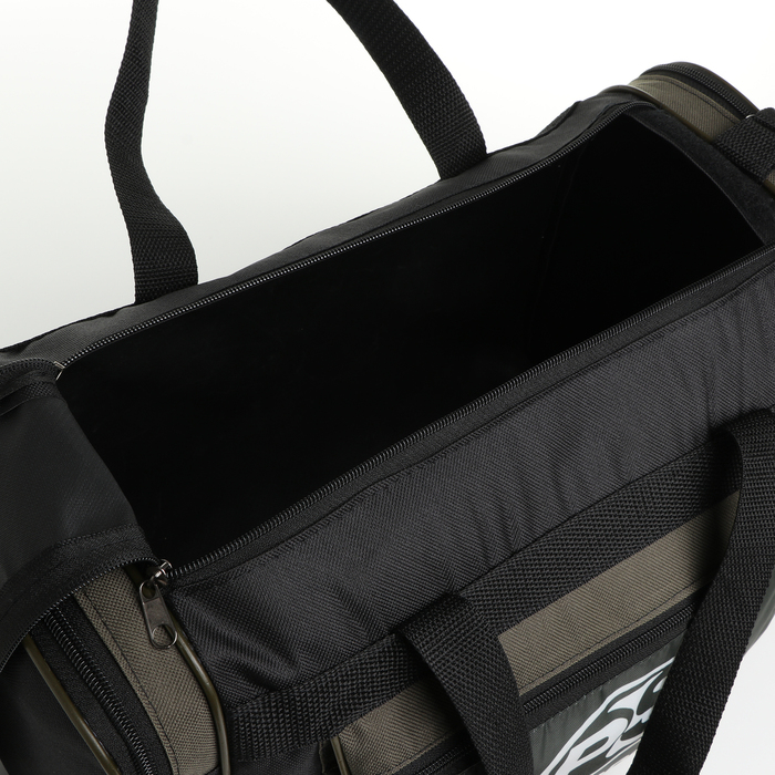 Сумка спортивная мужская на молнии, 3 наружных кармана, средний размер, цвет чёрный/зелёный