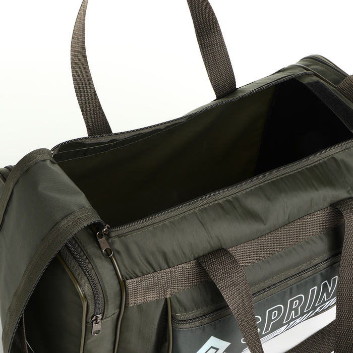 Сумка спортивная мужская на молнии, 3 наружных кармана, средний размер, цвет хаки