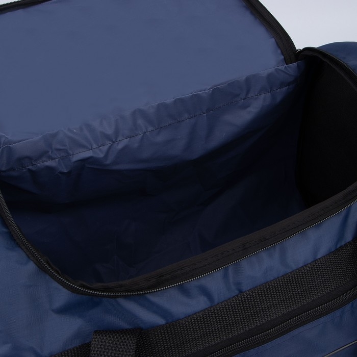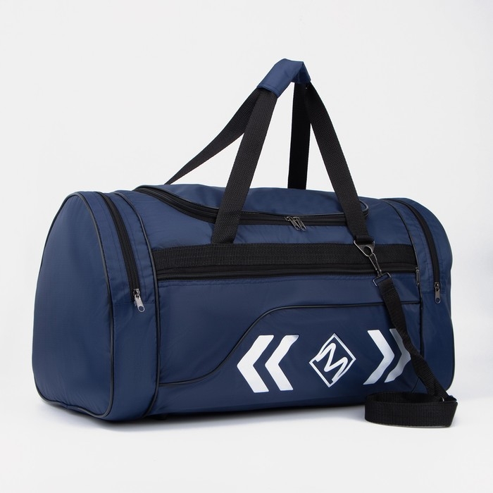 Сумка спортивная на молнии, 3 наружных кармана, длинный ремень, большой размер, цвет синий