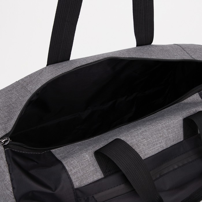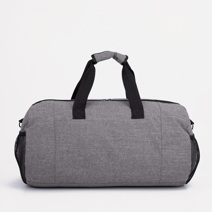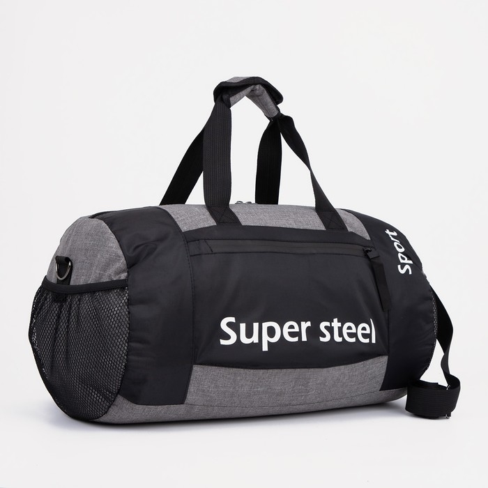 Сумка спортивная на молнии, 3 наружных кармана, длинный ремень, средний размер, цвет чёрный/серый