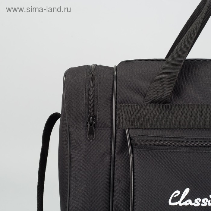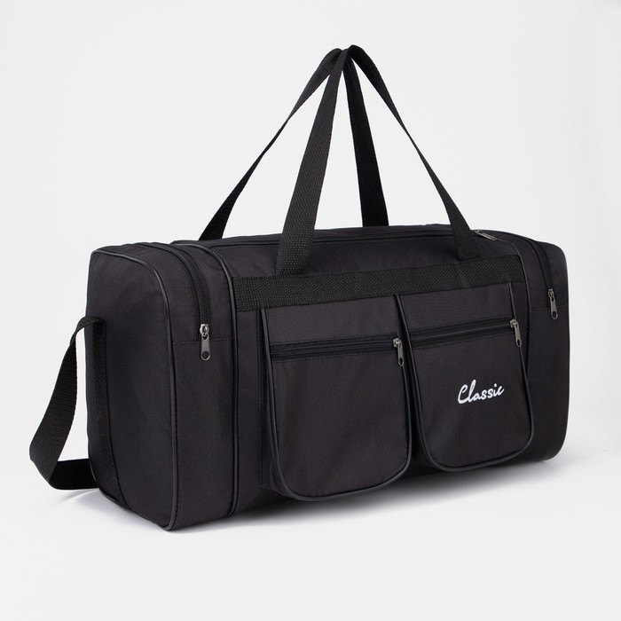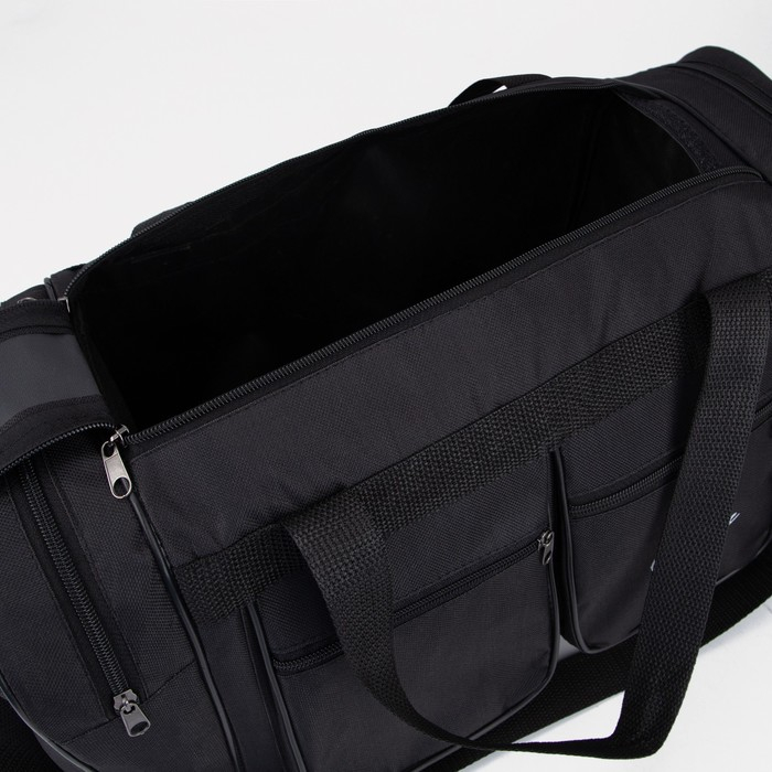 Сумка спортивная на молнии, 4 наружных кармана, длинный ремень, средний размер, цвет чёрный