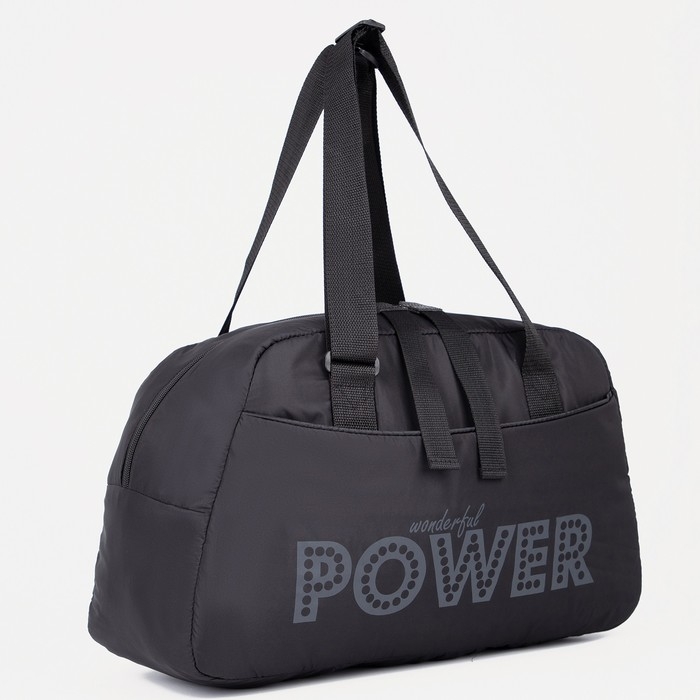 Сумка спортивная на молнии, наружный карман, длинный ремень, средний размер, цвет чёрный