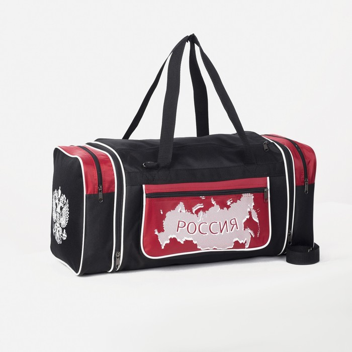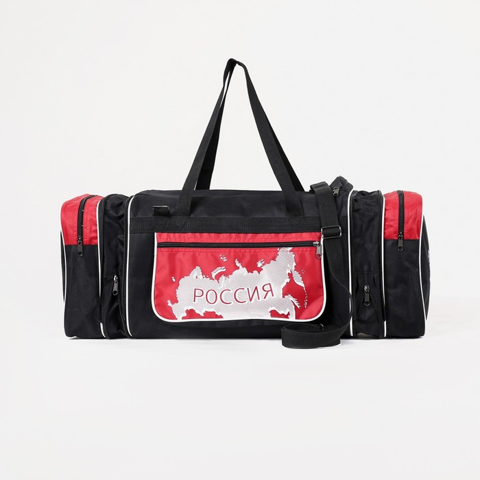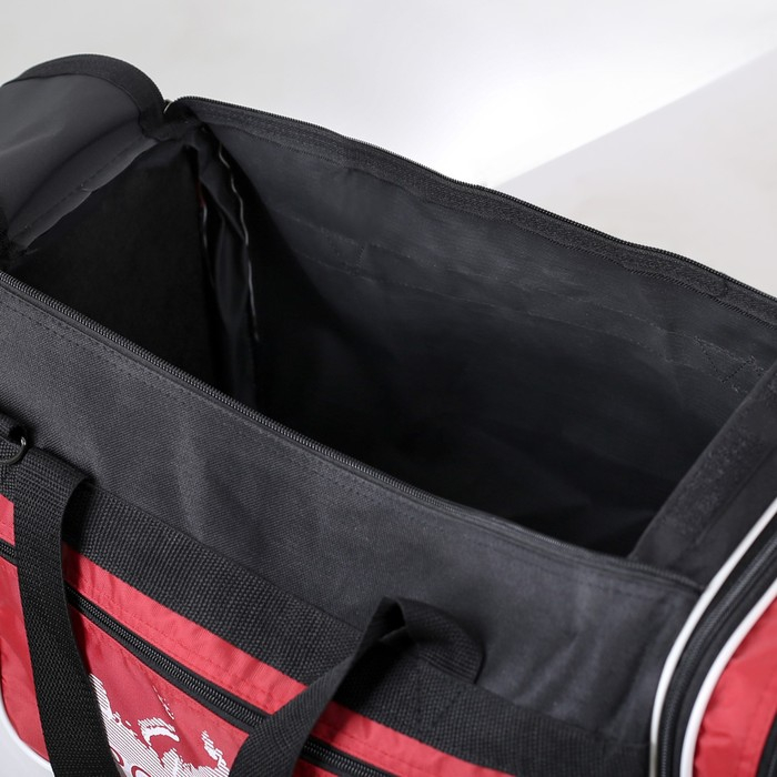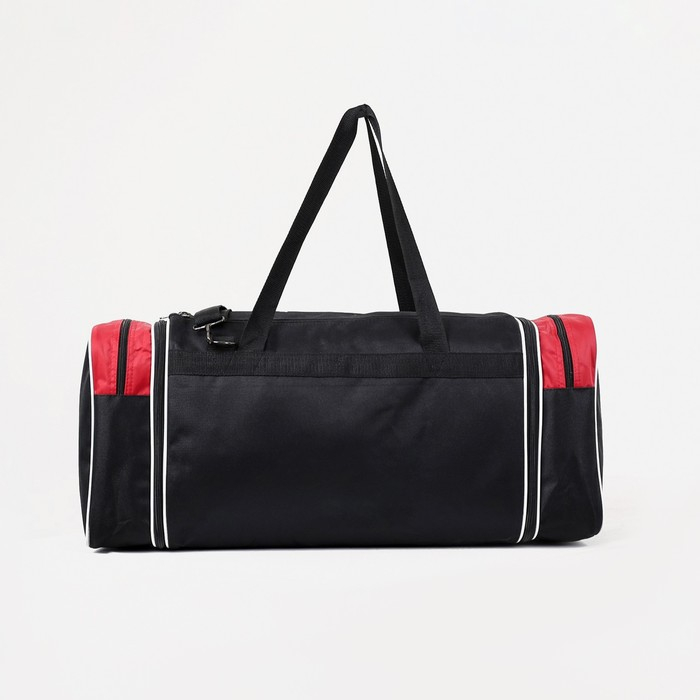 Сумка спортивная на молнии, с увеличением, 3 наружных кармана, длинный ремень, большой размер, цвет чёрный/красный