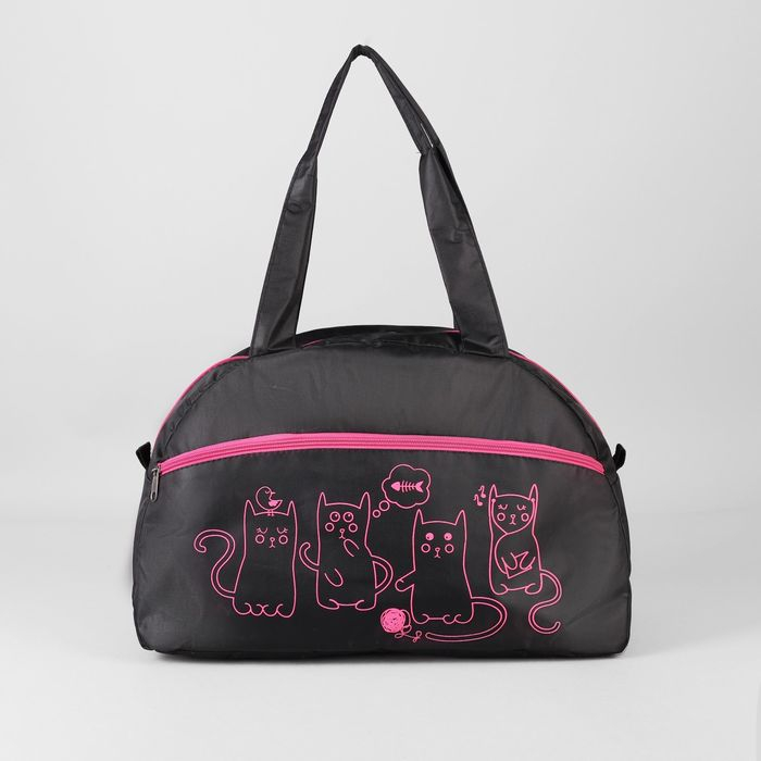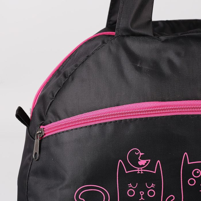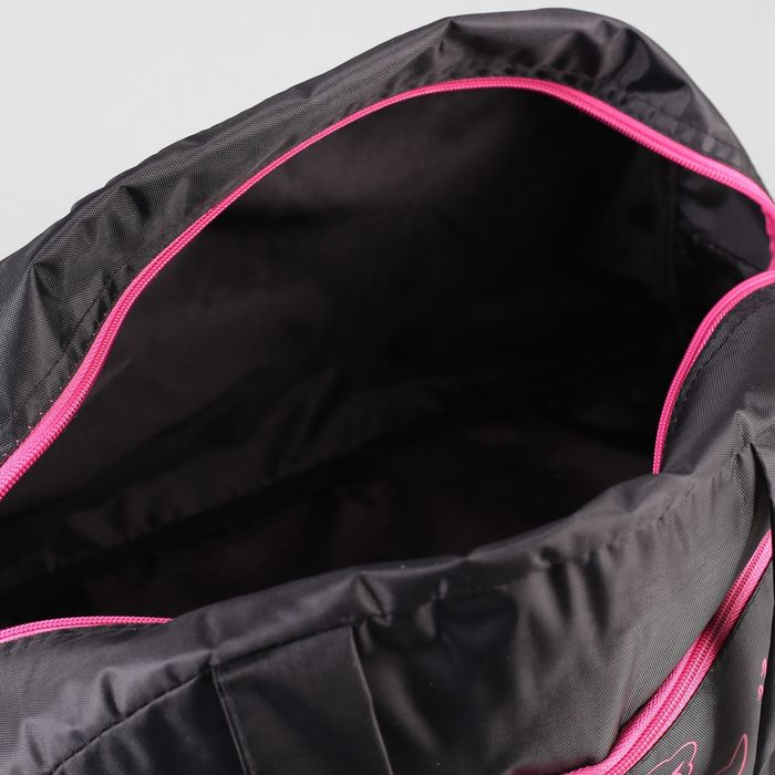 Сумка спортивная женская на молнии, наружный карман, средний размер, цвет чёрный/розовый