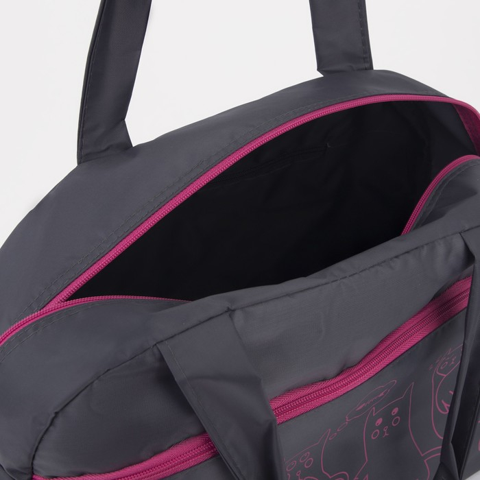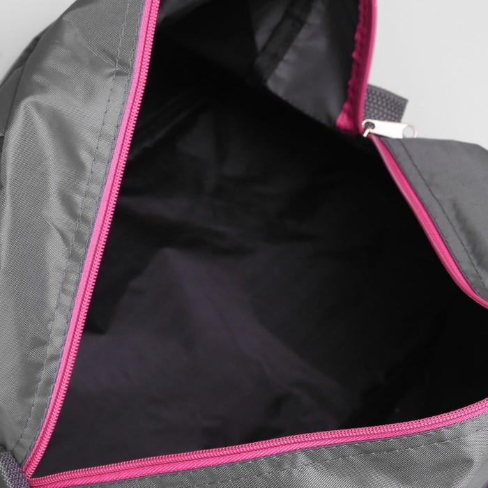 Сумка спортивная женская на молнии, наружный карман, средний размер, цвет серый/розовый