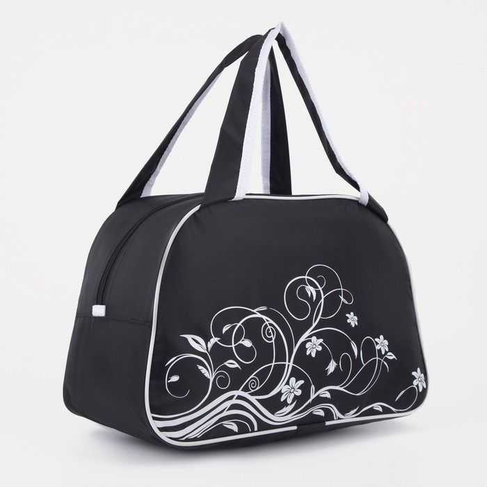 Сумка спортивная женская на молнии, средний размер, цвет чёрный/белый