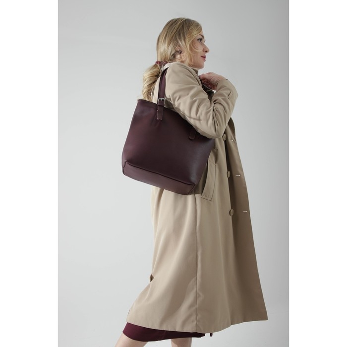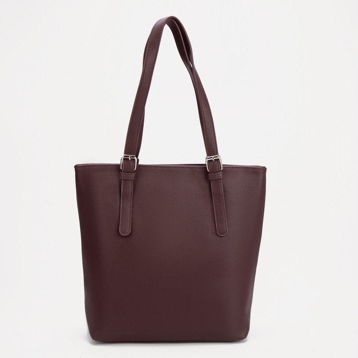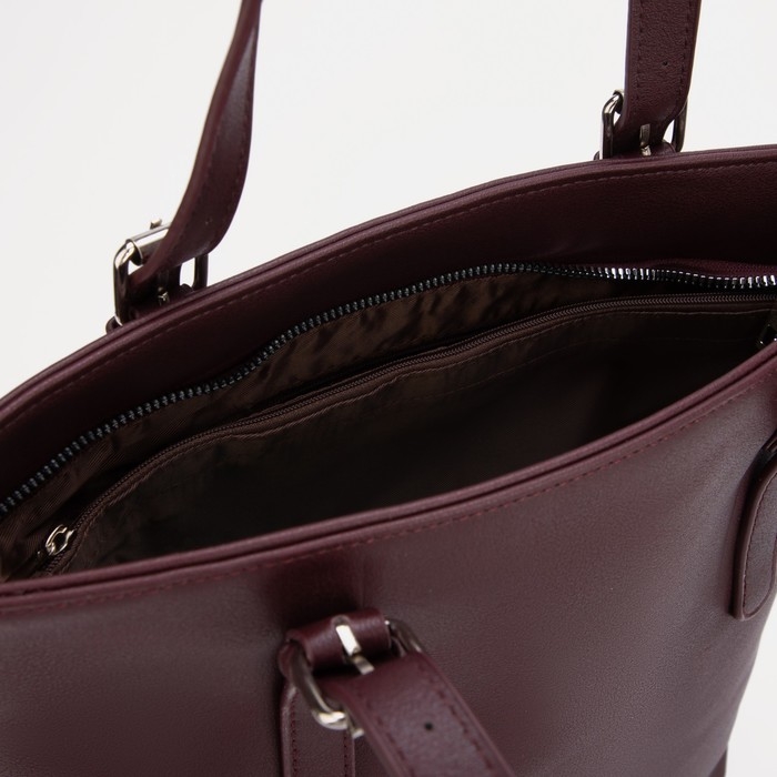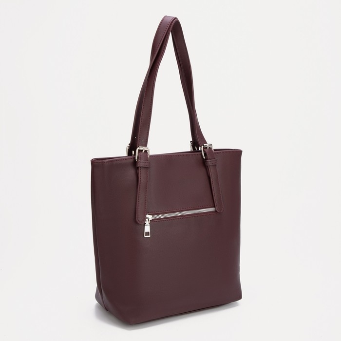 Сумка-тоут на молнии, наружный карман, длинный ремень, цвет бордовый