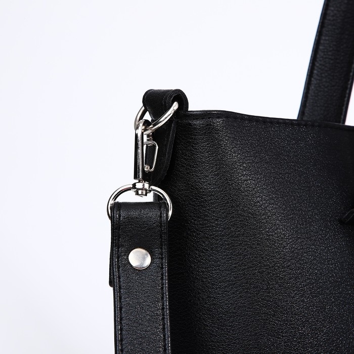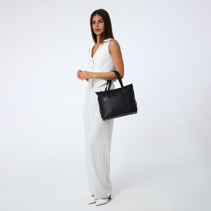 - Стильный и универсальный дизайн: классический черный цвет делает сумку актуальной в любой сезон и легко сочетаемой с любым гардеробом.