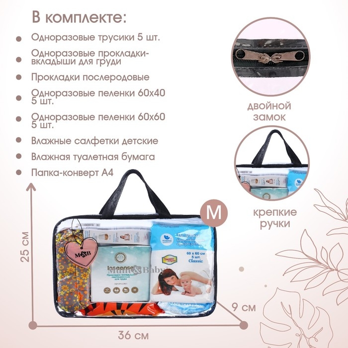 Сумка в роддом готовая «Сердце» с базовым наполнением, размер 36х25 см, 8 предметов, Mum&Baby