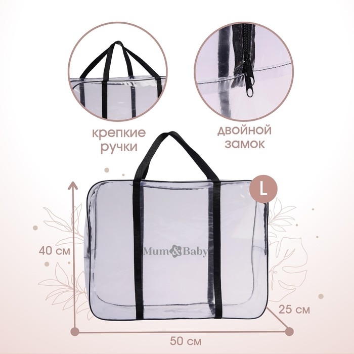 Сумка в роддом, размер 40х50х25 см, цвет прозрачный/синий, карман сбоку, Mum&Baby