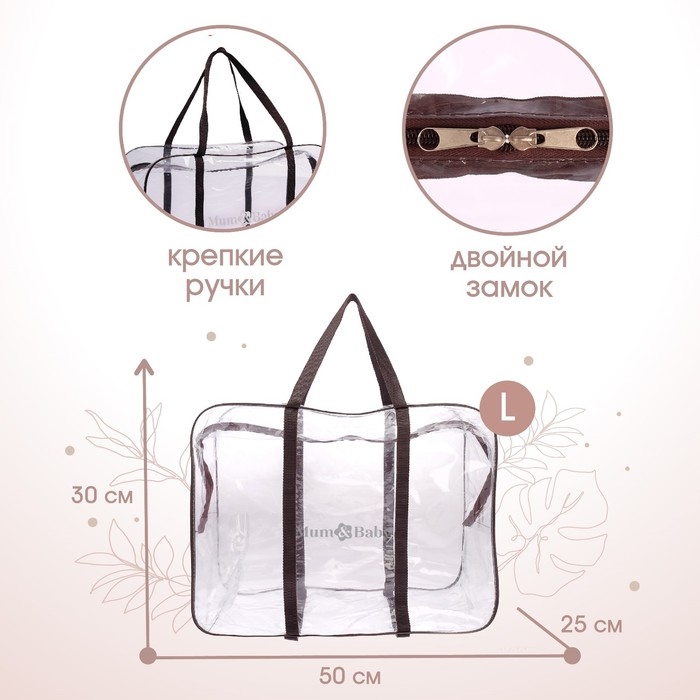 Сумка в роддом, размер 40х50х25 см, карман сбоку, цвет прозрачный/коричневый, Mum&Baby