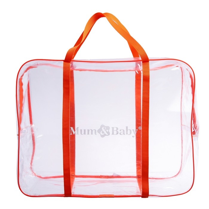 Сумка в роддом, размер 40х50х25 см, карман сбоку, цвет прозрачный/оранжевый, Mum&Baby