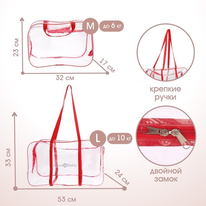 Сумка в роддом, с косметичкой, размер 33х53х24 см, набор 2 шт., цвет прозрачный/красный, Mum&Baby